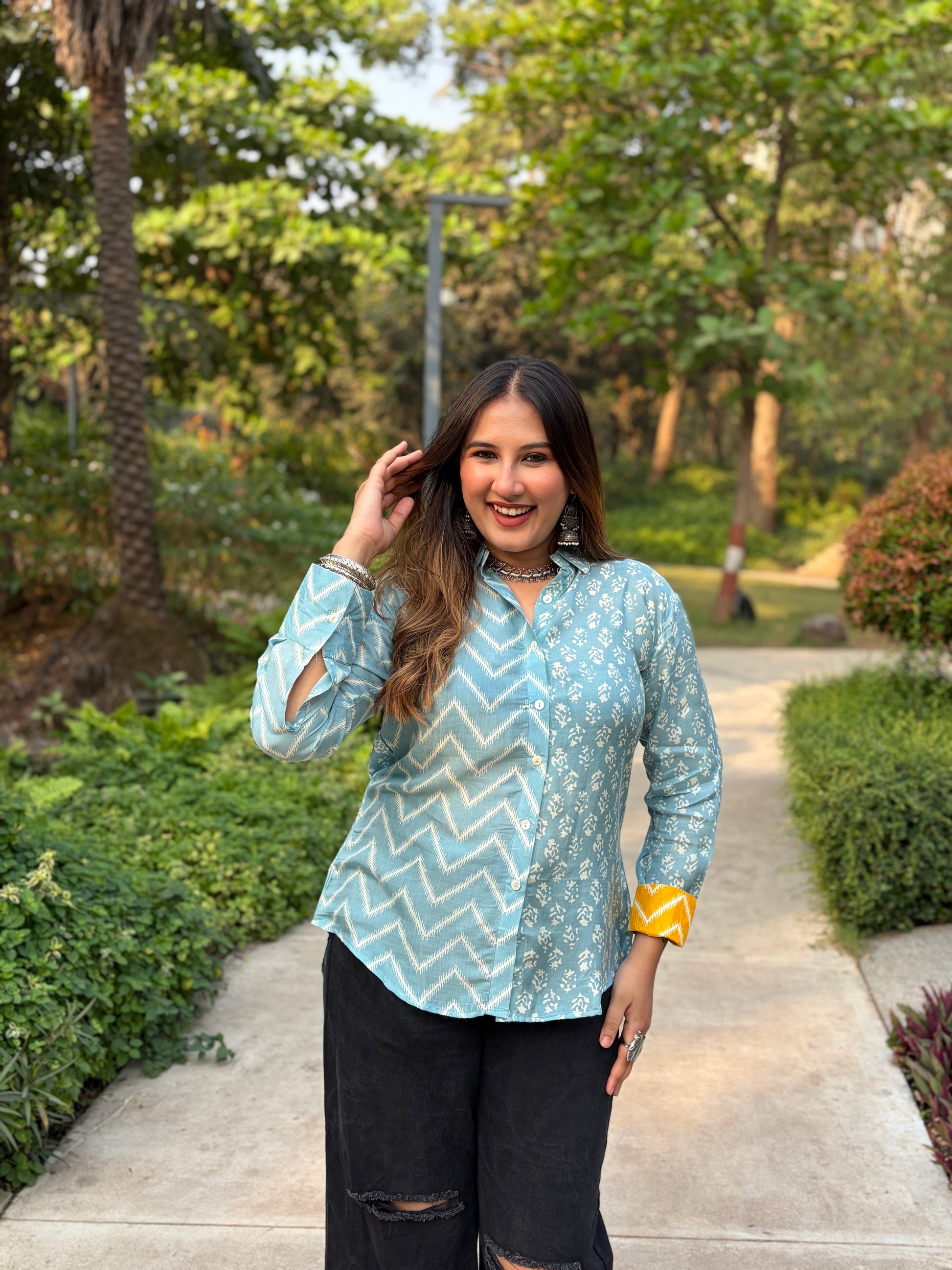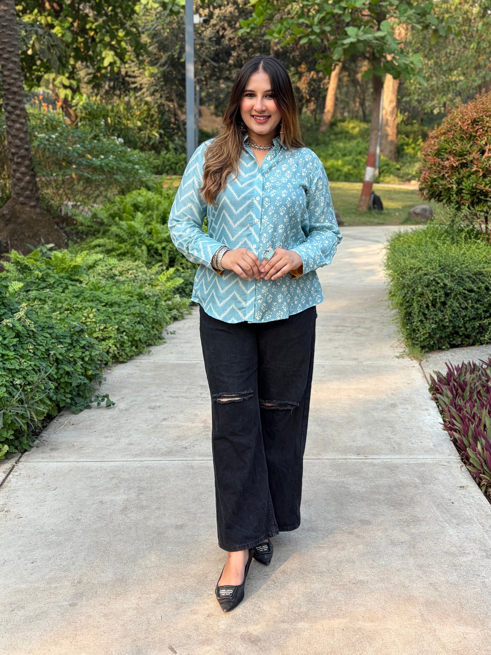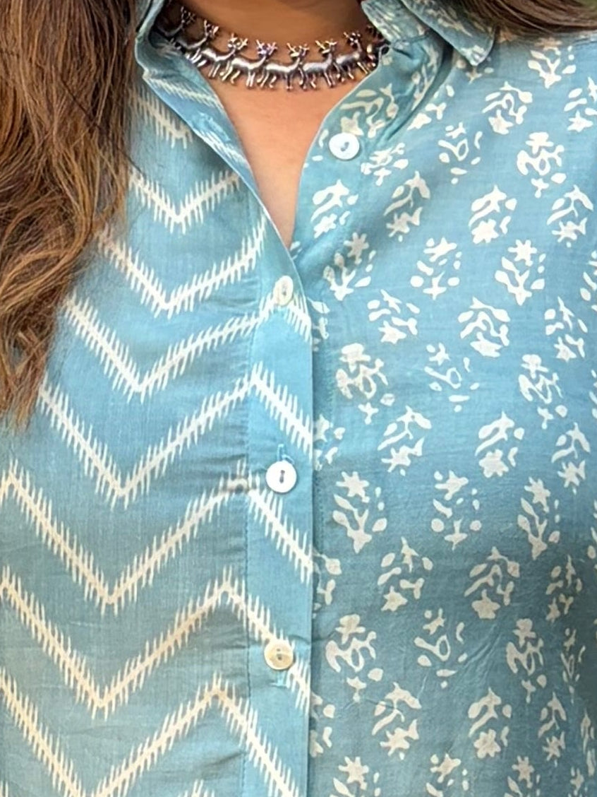 Sky Blue Printed Shirt